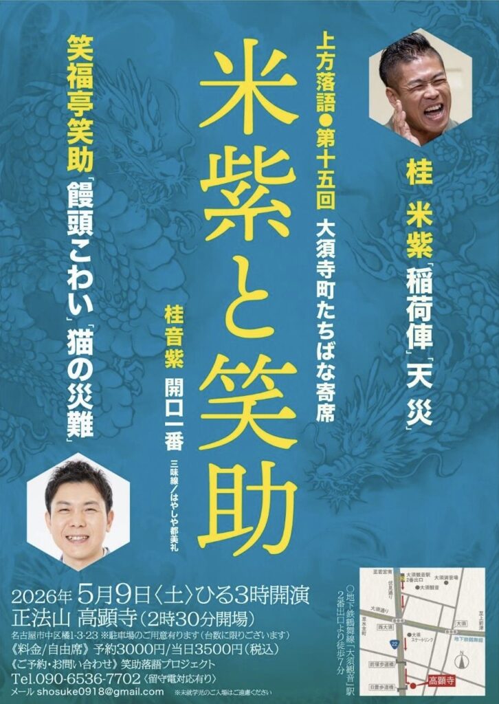 【ご予約・お問い合わせ】090-6536-7702(笑助落語プロジェクト)
